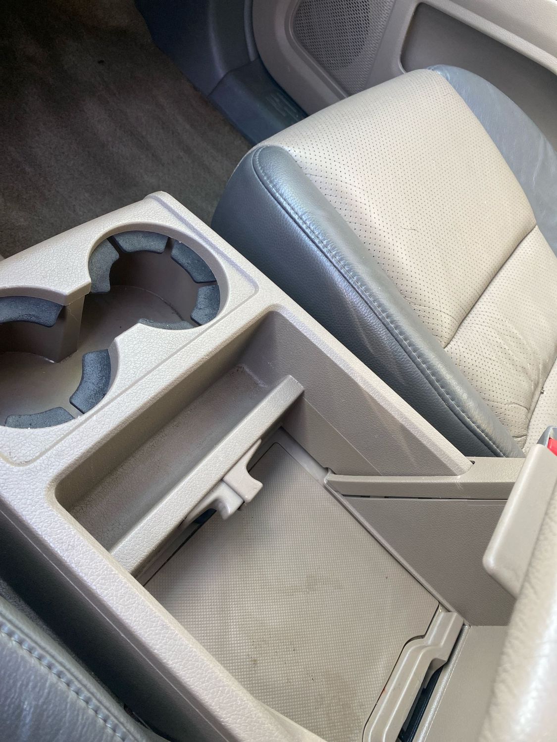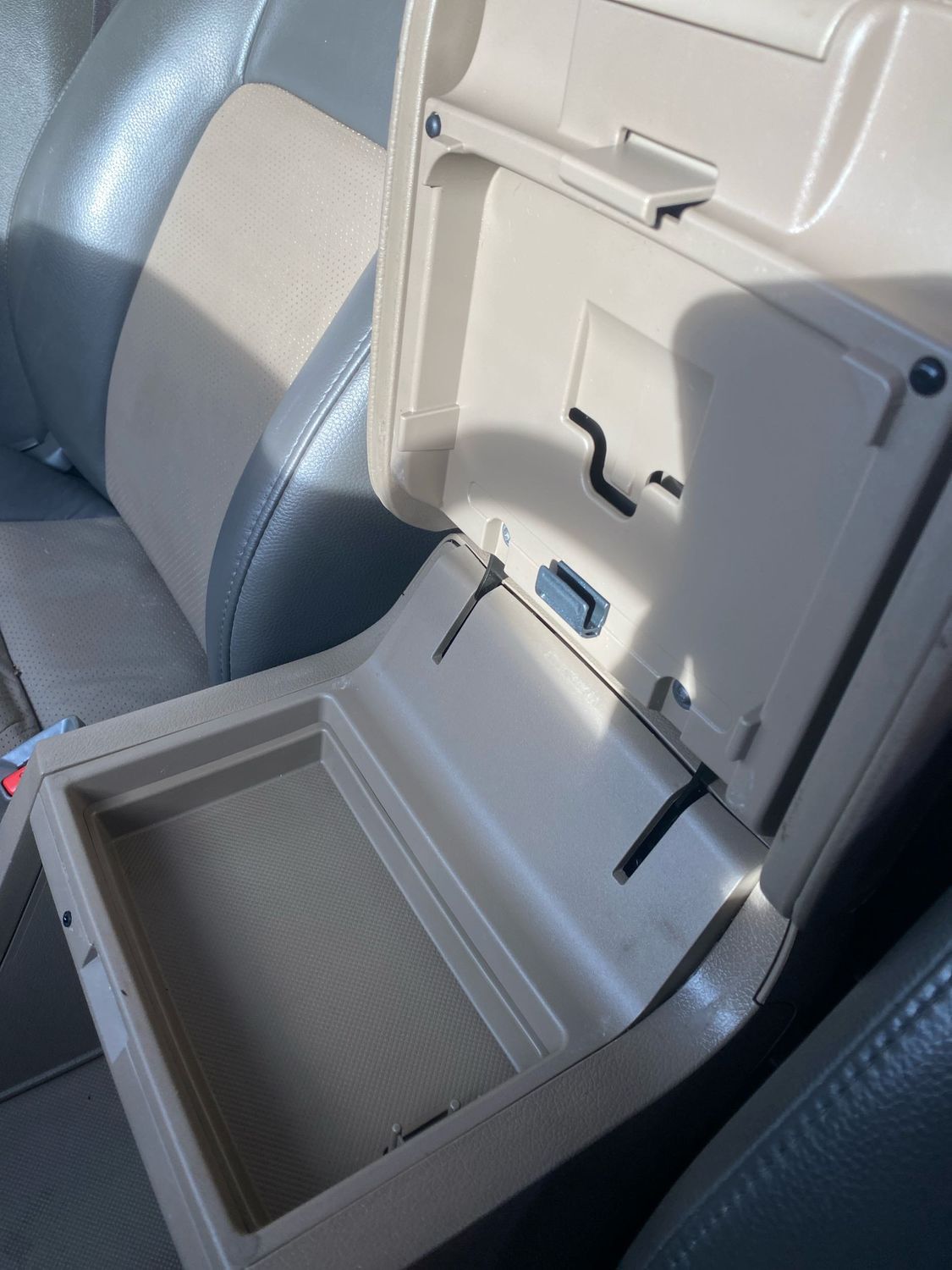 Floor console storage: Covered floor console storage