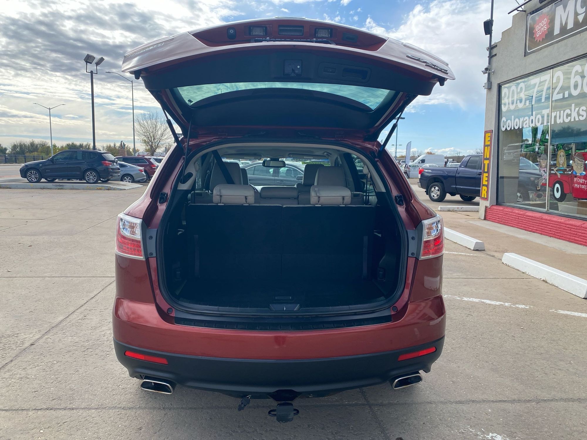 Third-row seatback upholstery: Carpet third-row seatback upholstery