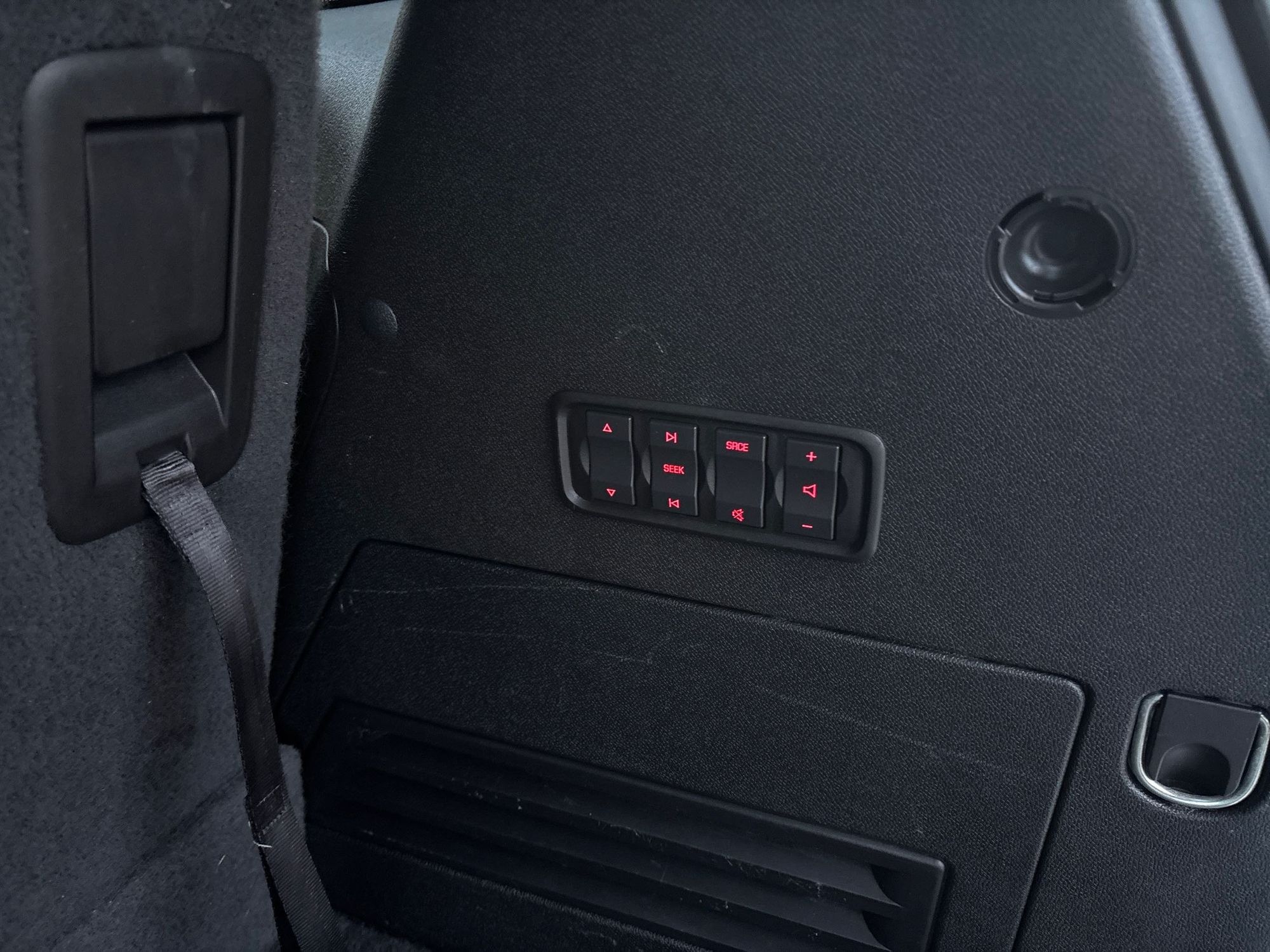 Third-row seatback upholstery: Carpet third-row seatback upholstery